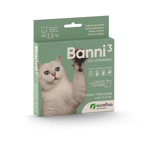 Contém 1 flaconete com 0,3 mL Banni3 até 2,5Kg