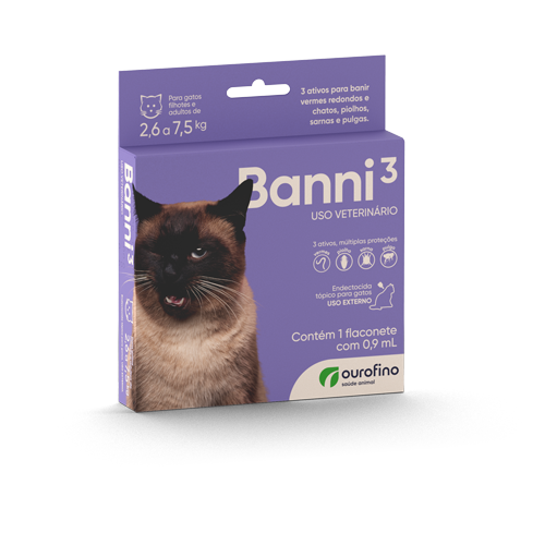 Contém 1 flaconete com 0,9 mL Banni3 de 2,6 a 7,5Kg